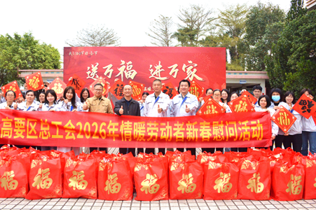 2月5日上午,高要区人大常委会党组成员、副主任候选人、区总工会主席区劲文一行莅临我司开展“送万福进万家”迎新春送祝福活动。