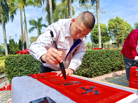 本次活动特邀四位肇庆市知名书法家现场执笔,将对新年的美好祝愿、对广大劳动者的崇高敬意凝注笔端,化作一幅幅寓意吉祥的春联作品,传递到一线职工手中。